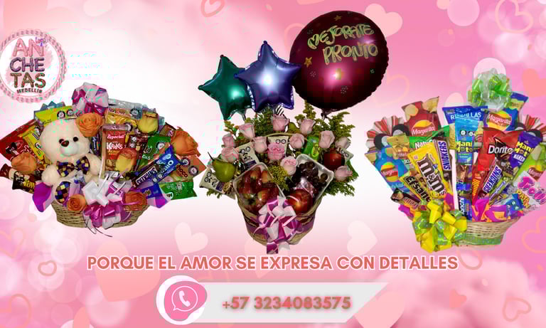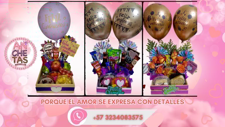 Bienvenido a Anchetas Medellín, donde convertimos tus momentos especiales en recuerdos inolvidables con nuestras exclusivas anchetas y regalos personalizados. Ya sea para celebrar un cumpleaños, aniversario, agradecimiento o cualquier otra ocasión, nuestras anchetas están cuidadosamente elaboradas con productos de la más alta calidad, que van desde chocolates y vinos selectos hasta frutas frescas y elegantes arreglos florales.