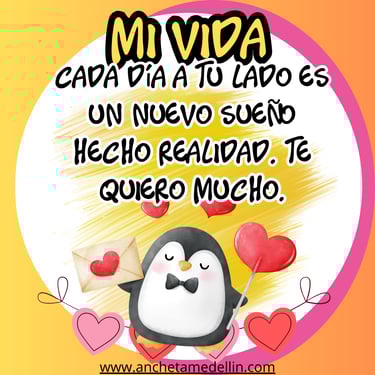 "Te quiero mucho porque haces que cada día sea una nueva oportunidad para ser feliz. Eres la persona que me inspira a ser mejor y a nunca dejar de soñar. Contigo, todo es posible."